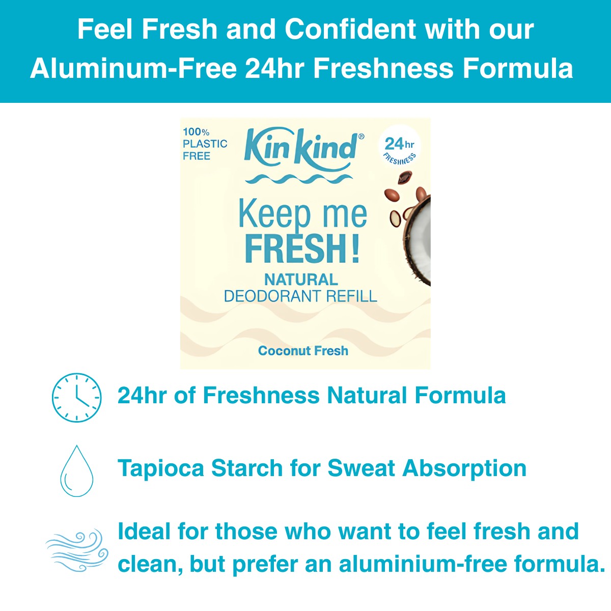 This refill works best popped into our plastic-free, fully recyclable KinKind Forever Case! If you don't yet have a case, click HERE for our aluminium free deodorant starter set with case included instead.