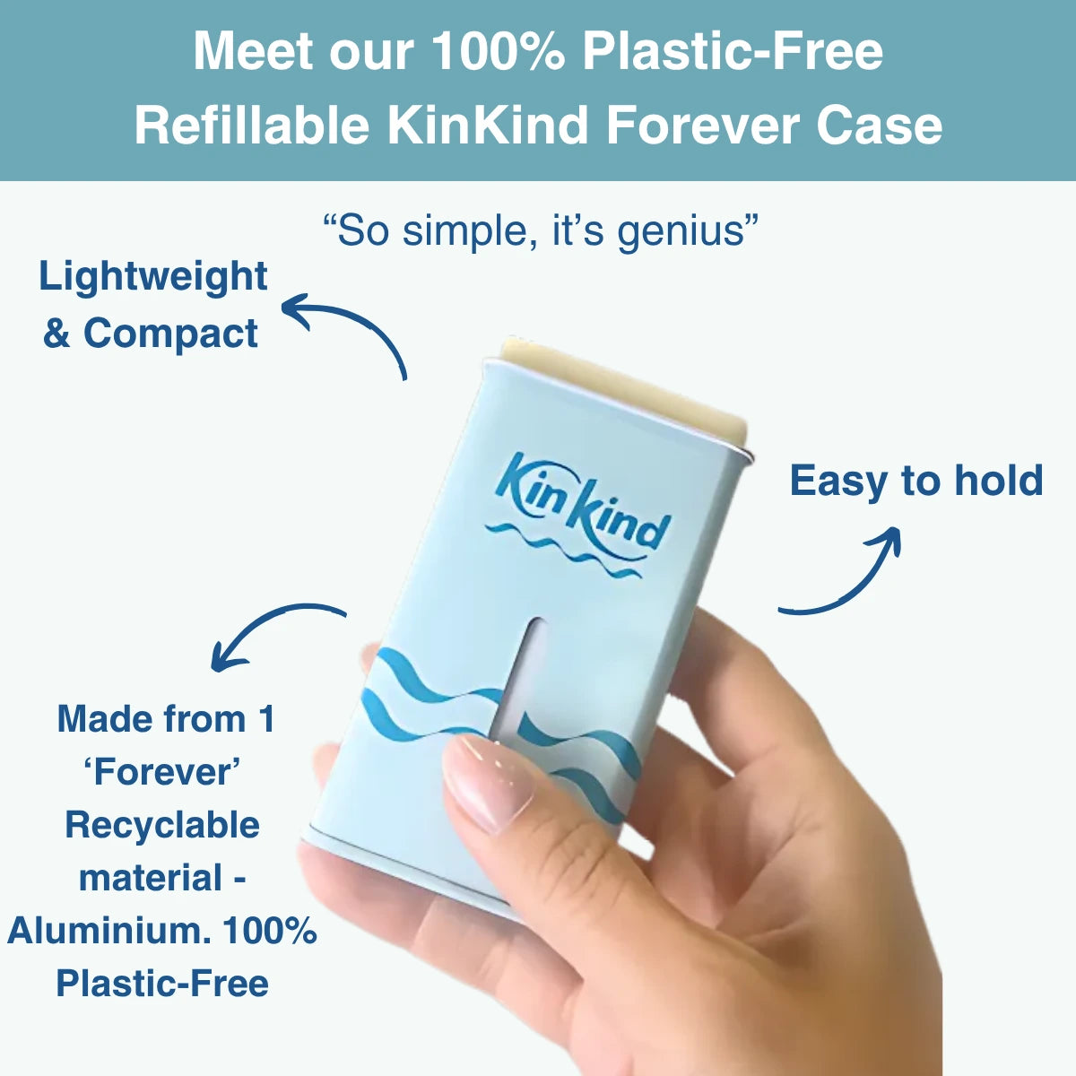 These plastic free antiperspirant refills work best popped into our plastic-free, fully recyclable KinKind Forever Case! If you don't yet have a case, click HERE for our Life's a BREEZE! starter set with case included instead.